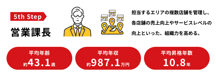 ◎課長昇格前のステップとして、3~5店舗のマネジメントを身に付ける